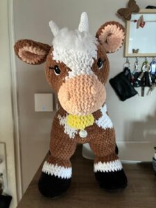 Ich finde, sie ist mir gut gelungen, so mit „Euter“ und Glöckchen… war viel Arbeit und Mühe, aber es hat sich gelohnt, oder?